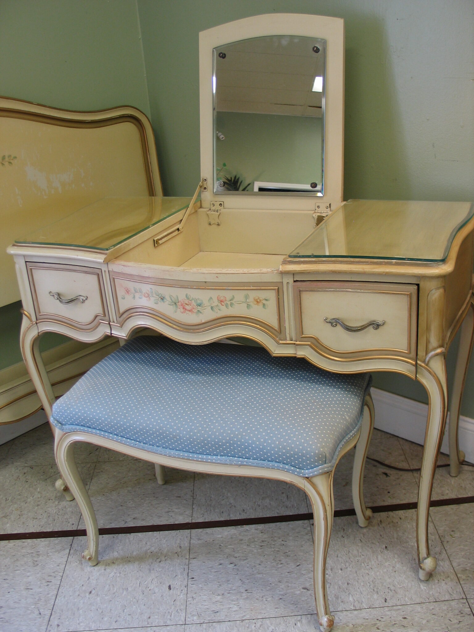 DREXEL French Provincial 2-Drawer Vanity 42" x 19" x 30" with Bench quantity